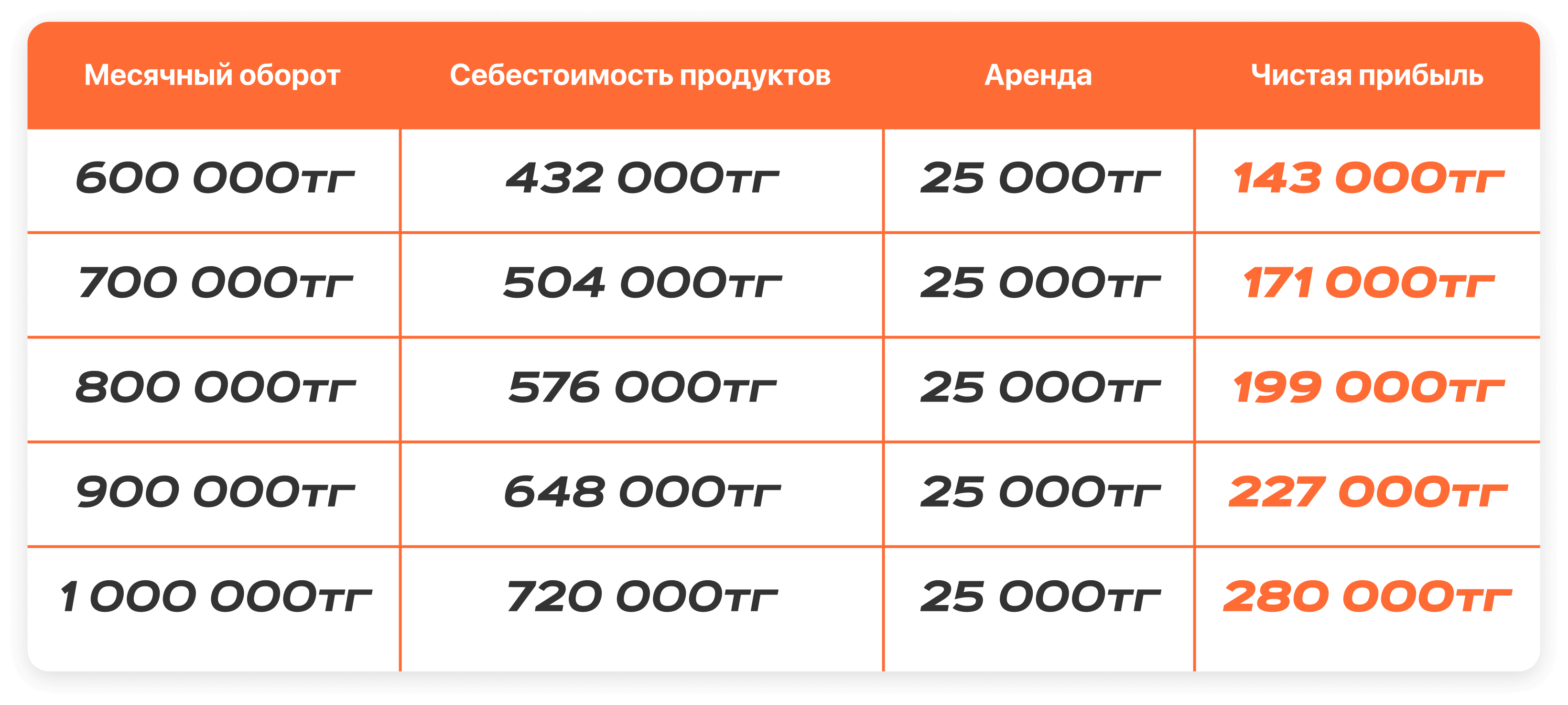 Итоговая прибыль зависит от локации, наценки на товар и объёма продаж